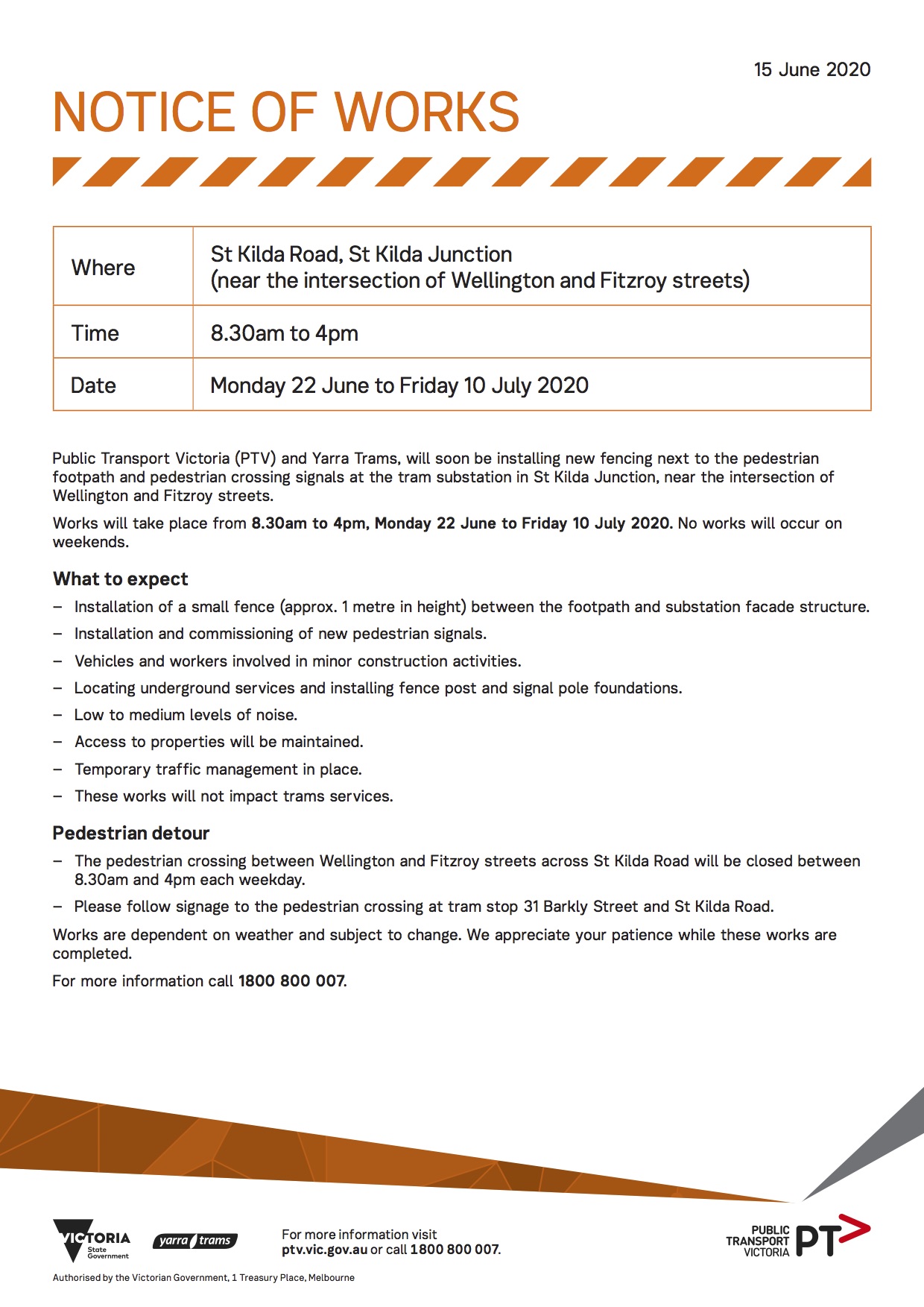 » St Kilda Junction Substation pedestrian fence and signals works notification